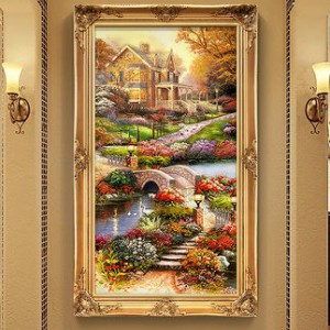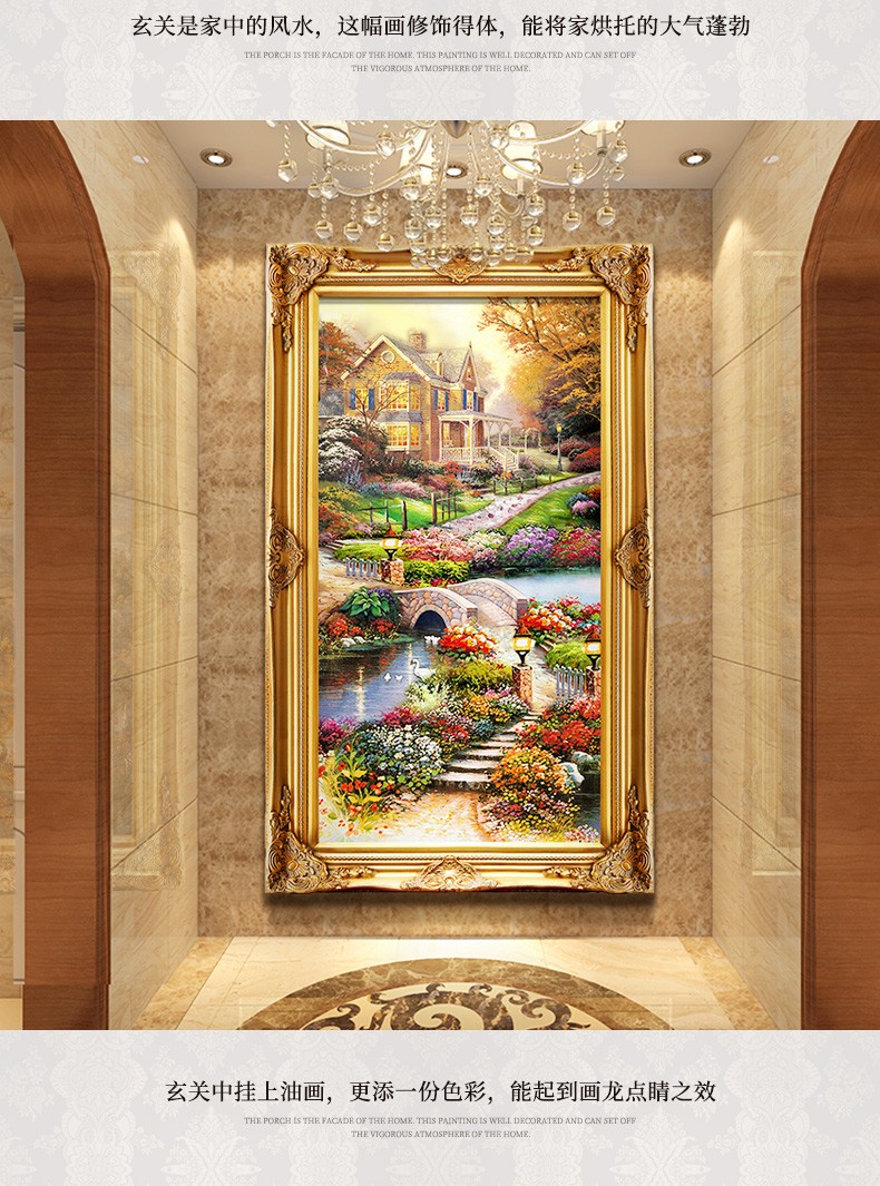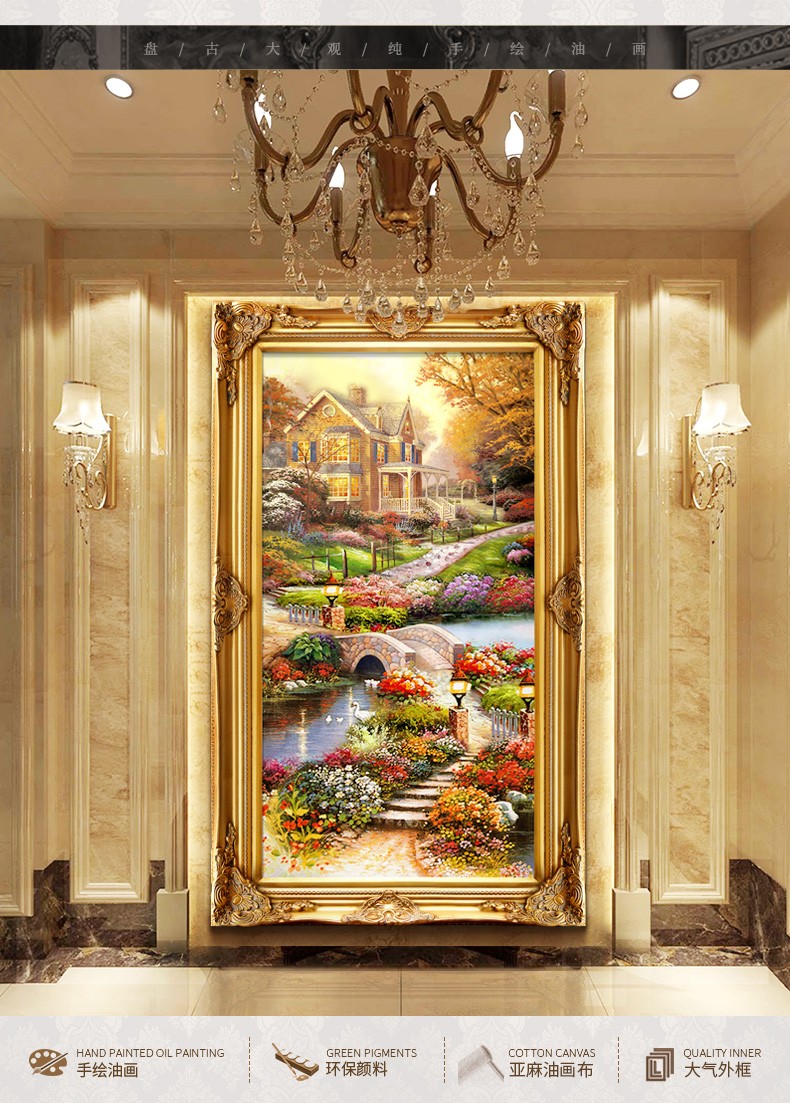 歐式玄關裝飾畫山水過道招財風水靠山寶盆山豎版美式掛畫油畫壁畫